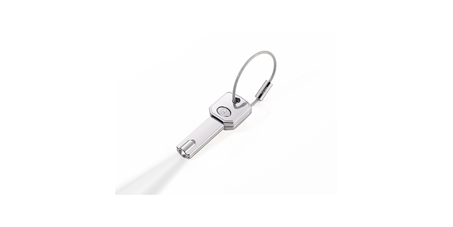 Keyring in design of a key with white LED light. Perfect for helping you to easily find the keyhole in the dark.